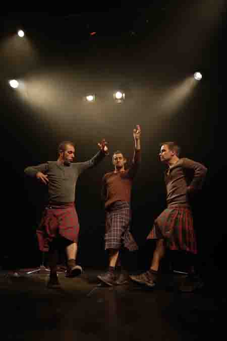 Macbeth, de Shakespeare, es “inadaptada” por esta creación colectiva. La sangrienta tragedia de este inmortal autor contada por tres personajes en kilt con el apoyo escenográfico de una máquina de humo (por lo de las nieblas de Escocia) cuchillos de cocina y tres micrófonos con pies que sirven como caballos, lanzas, espadas, horcas, bosques, tronos y, en definitiva, de toda la escenografía que precisa este montaje. Desde la perspectiva más hilarante, como siempre enfoca sus montajes la Companhia do Chapitô. ¡Y en castellano! |